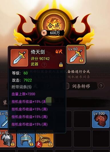 2、如我现在洗的是挂机金币收益。那么最好是两个装备都是挂机收益没有其他属性,这样洗出的8词条就全是8挂机收益了。