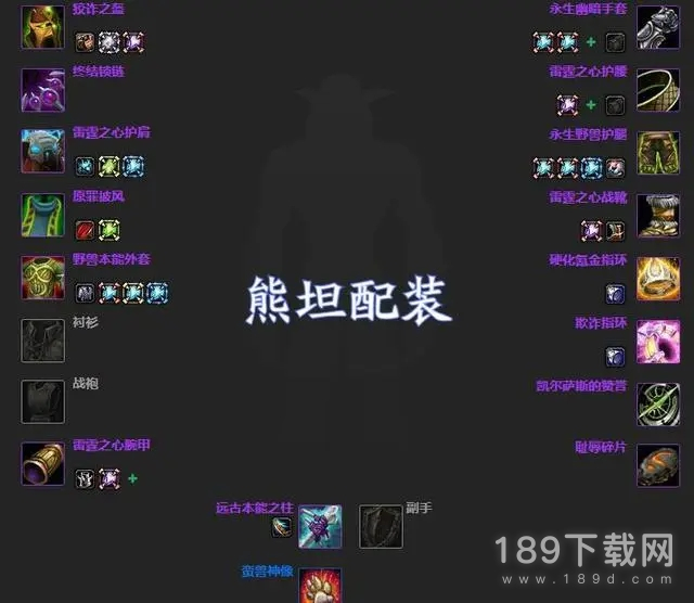 熊坦的额外绿甲加成已经被修复了,真是非常可惜,错失WLK第一坦克的地位。熊坦在前夕的配装以输出仇恨向为主,哪怕是这一身高仇恨配装,也有16729点护甲和17736点血量,足够用了。