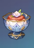 妮露的特色料理。晶莹剔透的杯子宛若华美的珠宝盒一般,装着入口即化的香软布丁。这一抹红艳的色泽…恍惚间让人联想到了妮露婆娑起舞之时,那熠熠生辉的身影。不由希望这一舞能永远没有落幕的时刻。