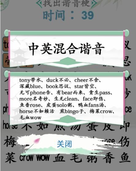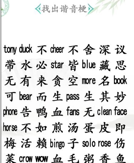 2、然后就只需要在规定的时间内把所有的谐音找出来,全部答案是: