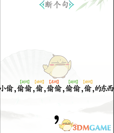 这一关只需要玩家把语句改成【小偷,偷偷,偷,偷偷,偷偷,偷的,东西。】就可以了。
