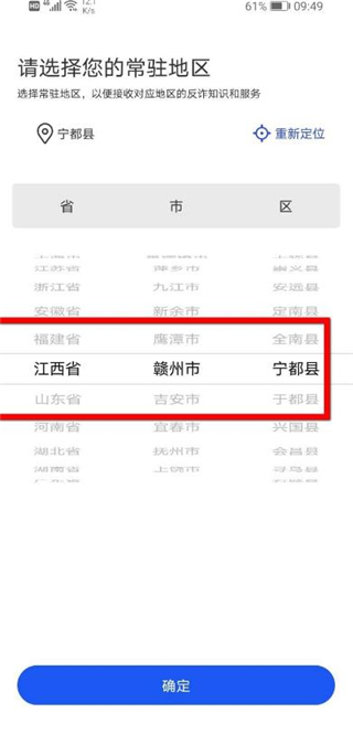 1、打开《国家反诈中心》APP后,先选择自己所在的城市区域。