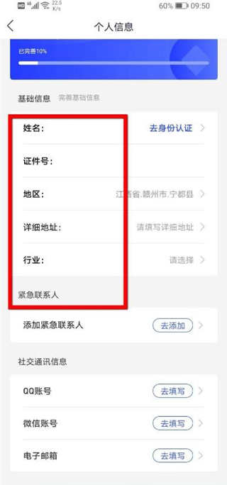 5、用户进入个人信息界面后,输入自身的信息进行完善即可。