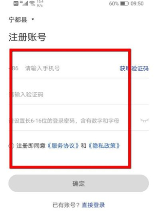 3、进入注册界面后,用户需要输入自己的手机号并完成验证,然后设置账号密码。