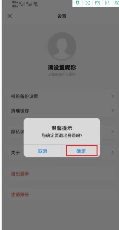 4、在弹出的提示窗中点击确定按钮即可退出账号的登录状态。