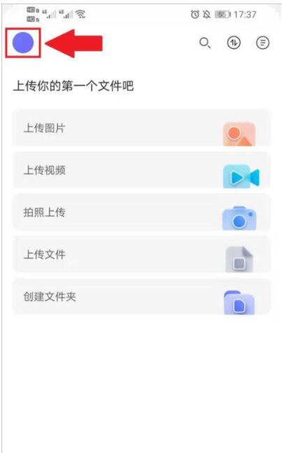 1、在《阿里云盘》APP的首页中点击左上角的头像打开菜单。