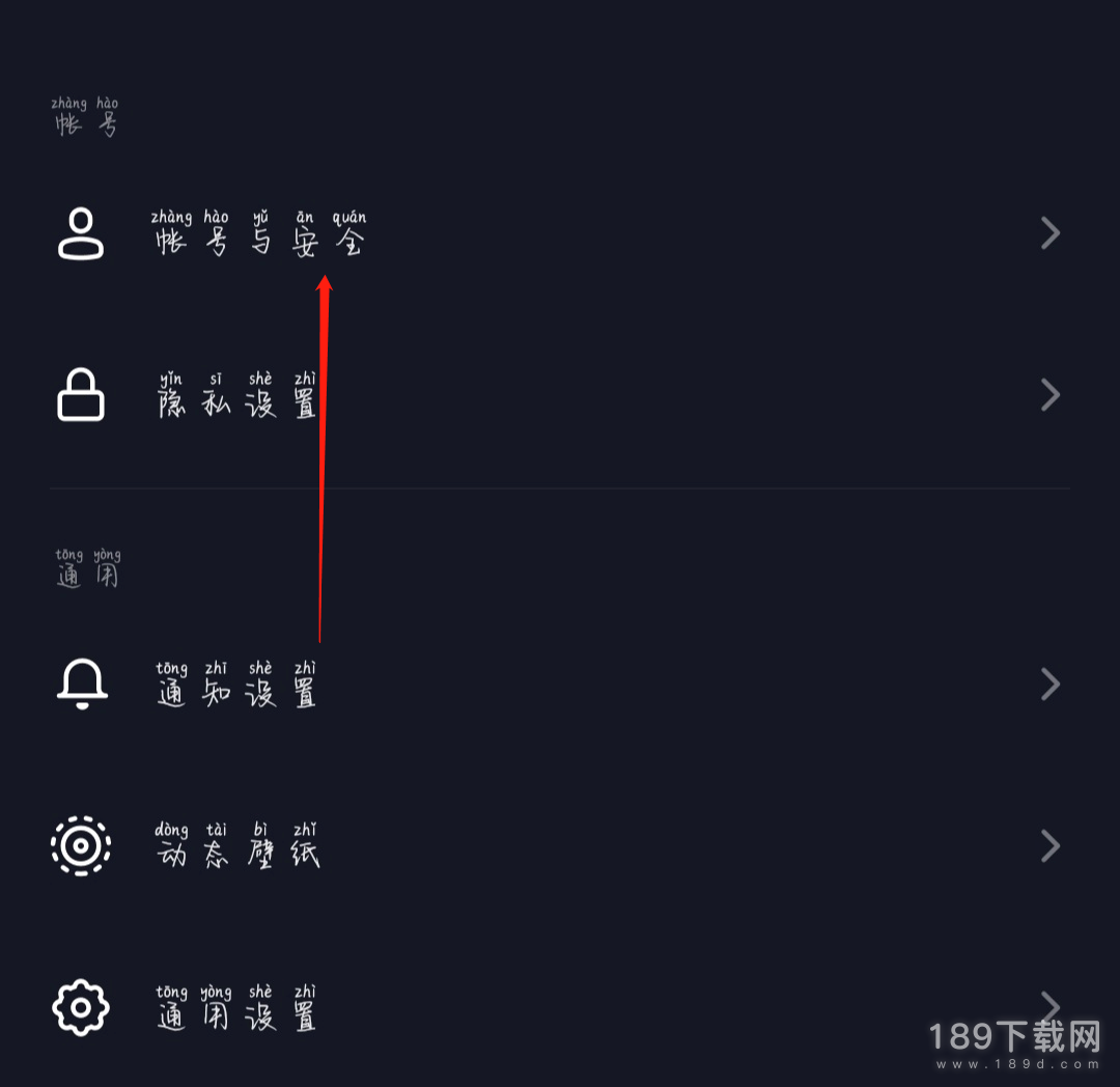 2、点开以后进入设置的界面,然后点击账号与安全的选项,进入之后有个登录设备管理。
