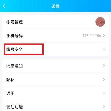 3.在设置界面中找到“账号安全”并点击进入。