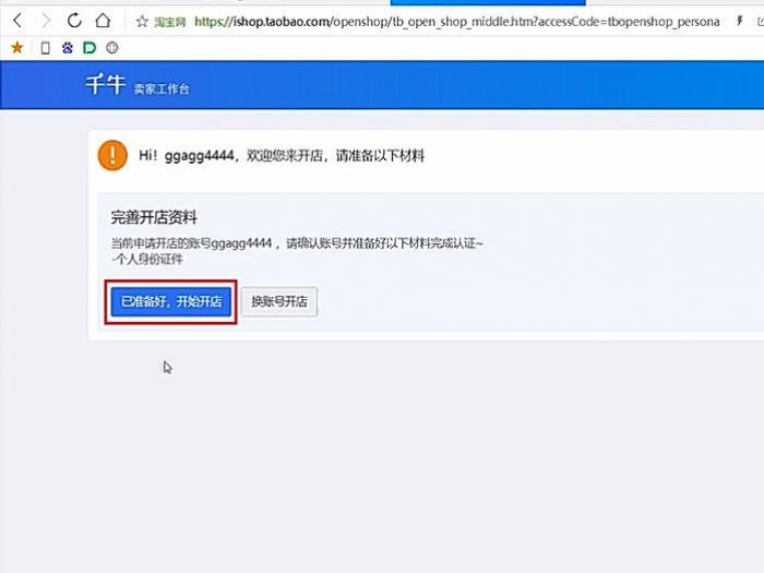 5、点击“已经准备好,入手下手开店”。