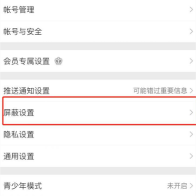 2.在设置列表打开屏蔽设置。