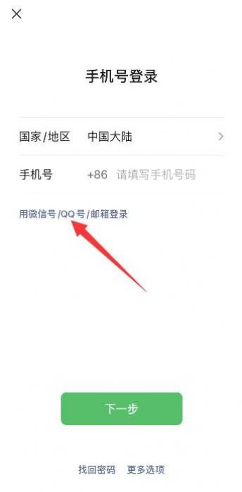 点击用微信号/QQ号/邮箱登录,点击下一步。
