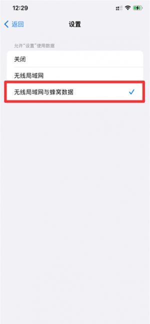 在展开的配置界面中,勾选无线局域网与蜂窝资料便可。