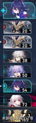 但是速度和行动值这个啊,略乱。进入战斗或者每波战斗开始,因为初始敌人高速减了一个很大的行动值。即使你90速也能排一个35的行动值,而一个角色行动结束后赋予34行动值需要294速,这显然不可能。所以即使采用高速驭空,你仍然需要保证主c的速度在队伍中排第二或第三。否则会丢掉一轮或者三轮buff覆盖率。