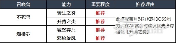 在前期AP点数不是很充足的情况下,在学习【转生之炎】前,可以先装备【猩红龙卷风】和【热浪】。【升腾之炎】的CD较短比较适合与【转生之炎】搭配,但与其他能力搭配的话可能输出会有些不够。