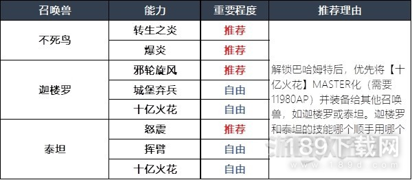 【十亿火花】的输出表现非常优秀,如果AP不足的话,也可以考虑不带【转生之炎】,但最理想的状态下是两个都带。