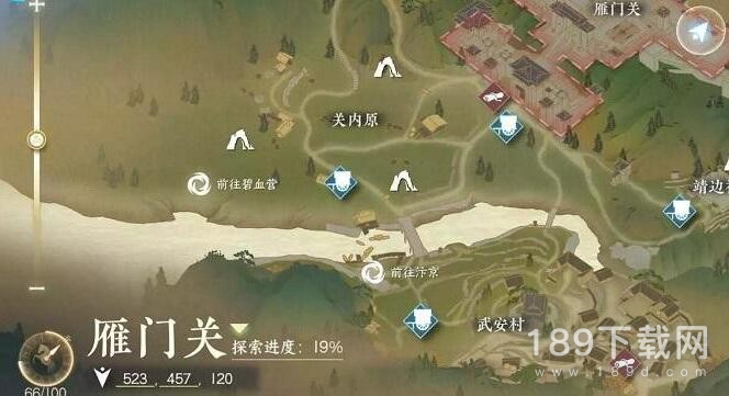 1、先来到雁门关,接着玩家可以根据坐标位置前往任务地点。