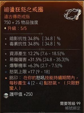 戒指:*资源产生*爆率(怒气上限/伤害类)