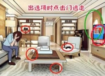 4.最后一个场景点击如下,出选项时点击门逃走。