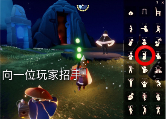 向一位玩家招手;