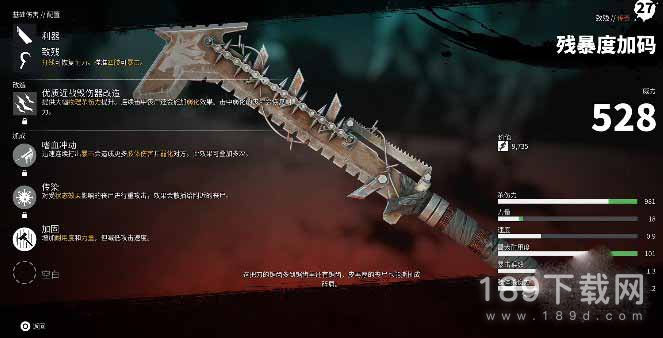 -溅血:击中丧尸会造成额外的出血伤害,并让附近的丧尸也开始出血。