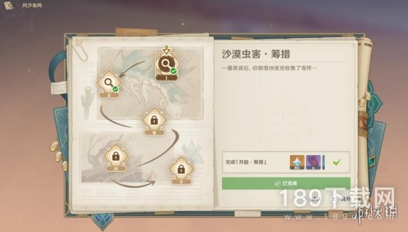 最后牵引四叶印,飞到「对沙虫用杀虫炮」前,点击「设置」,第一天的挑战完成。