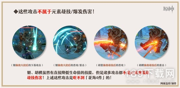 ②.胡桃、久岐忍可以通过元素战技降低生命值从而触发4件套的效果,但胡桃的主要伤害为重击(施放元素战技后的各种枪击均不属于元素战技伤害,仅有血梅香属于元素战技伤害),且两名角色每次元素战技技能受伤1次,不能持续触发该套装的效果。