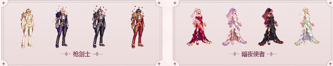 不渝誓约婚礼装扮套装自选礼盒开启后,可以选择职业和颜色(4选1),获得含皮肤装扮的不渝誓约婚礼装扮9部位套装。