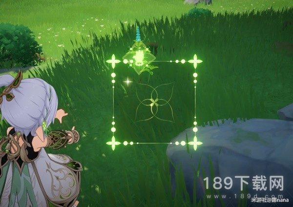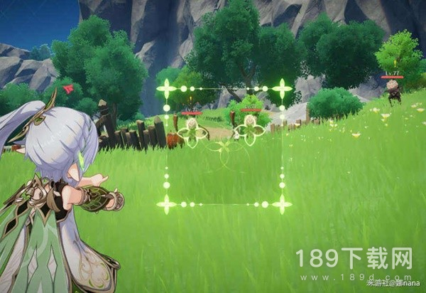 被纳西妲元素战技中间的小框框瞄准时会出现一个类似四叶草图案(蕴种印)在敌人的身上。