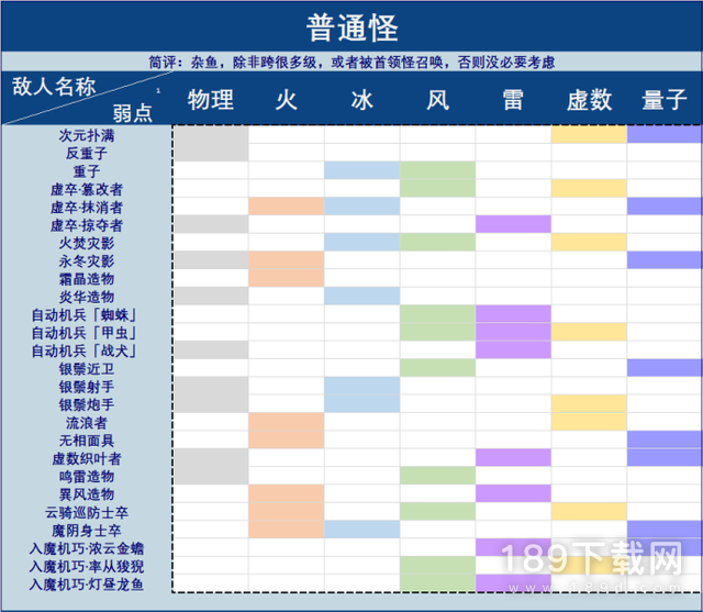 雷>火=风>虚数>量子>物理=冰