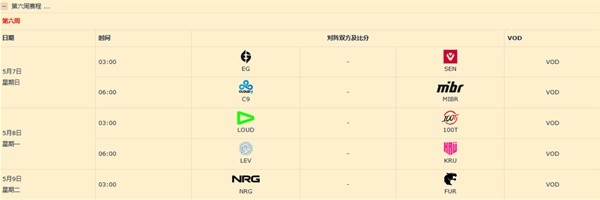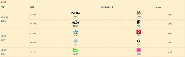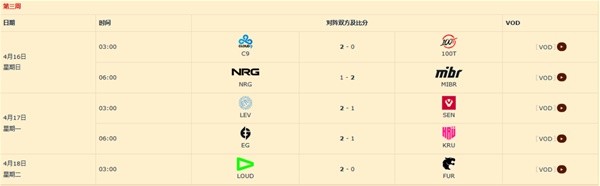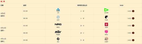 所有比赛皆为Bo3