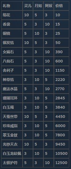 三个女主角喜欢的礼物及送礼增加的好感度