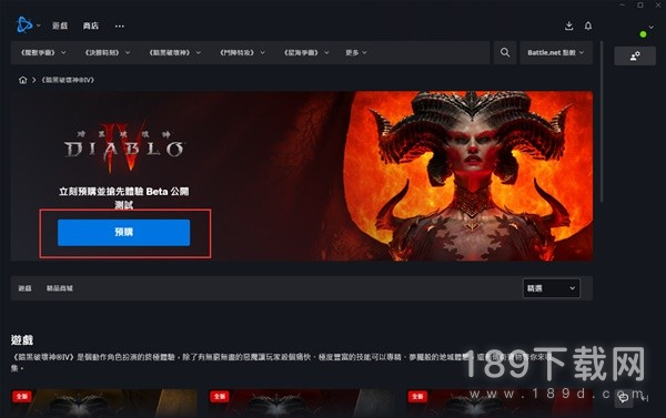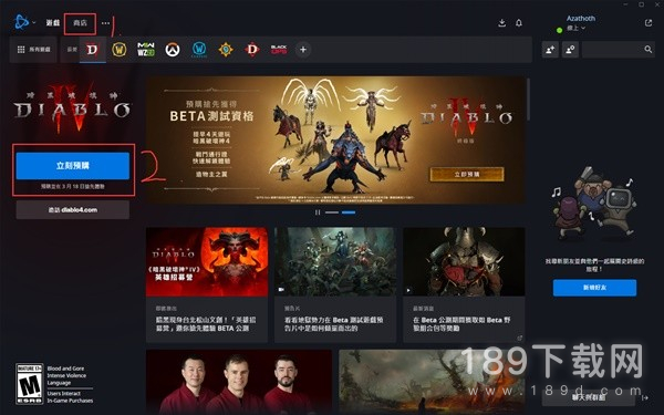 以商店为例,在商店中选择《暗黑破坏神4》进入游戏详情页。