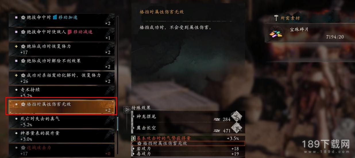 格挡时属性伤害无效,推图最强防御词条,只要给武器上这个词条,Boss丢法术时格挡就行,不会吃伤害。