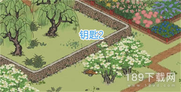 2:第二个钥匙,在围墙外面琼树下面可以找到,如图所示的位置;