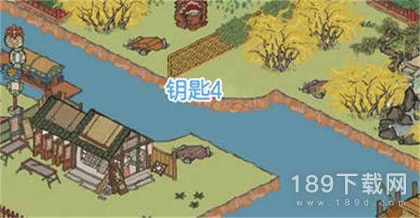 3:第三个钥匙,在花窗店右侧,河对面连翘树可以找到;