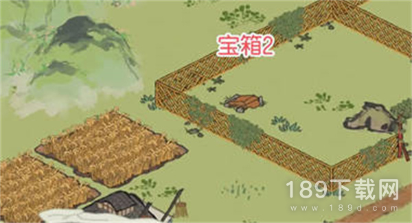 7:第二个宝箱,在篱笆墙内,左边有金色的农田;