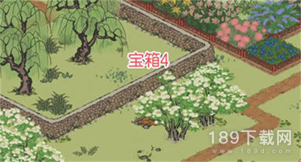 8:第三个宝箱,皂角树林中,左侧是柳树,右侧是栅栏,就在中间这里;