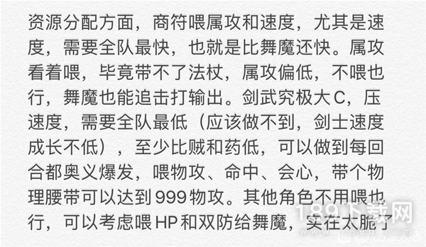 由于使用物理输出职业的几乎都是sp少得可怜,而且输出几乎全靠奥义,sp吃紧,商4显得非常有用;武3火场怪力比较看脸,乱敏害人;星2适用于1回合防御,2回合奥义爆发,有亚芬调和可不带;神4可以奶出血量上限,最高可达9999,可以不用带体力项链。