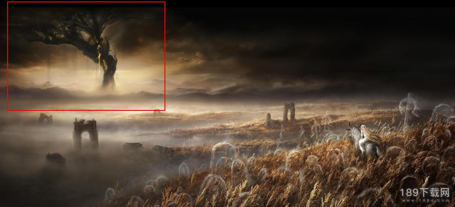 目前已有的情报只有这一张图,最先注意的是宣传图左侧的黄金树远不如游戏中那样宏伟,可以猜测这必然不是玩家原本的时代,应该是黄金树成长时或是黄金树灭亡时的另一时空。