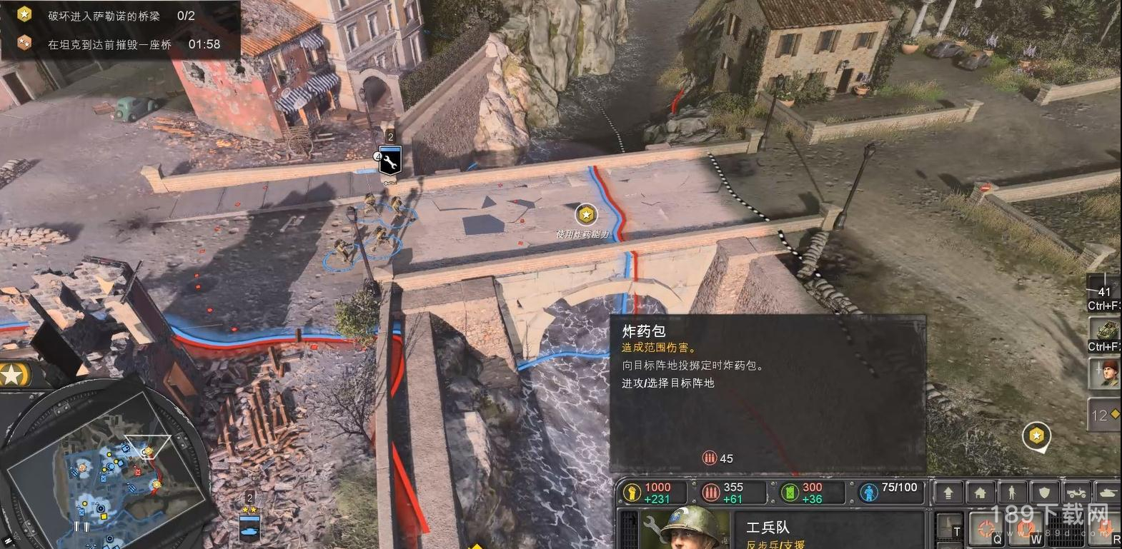 要尽快,刚才抢到的加农炮也可以用于炸桥。先用加农炮轰炸,然后再用工兵扔炸药包。