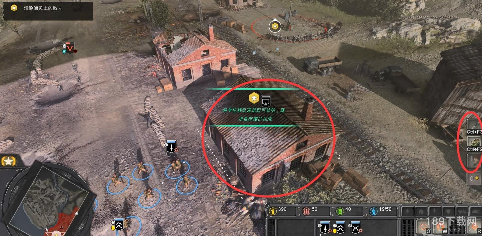 将士兵驻防到建筑里,可获得重型掩护加成。任务中随时注意活用屏幕右侧的支援能力。