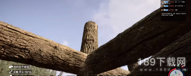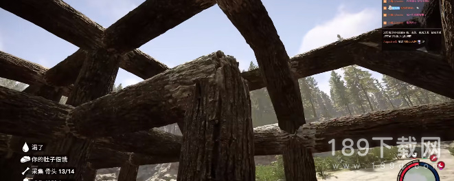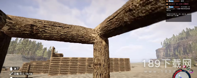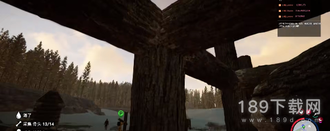6、之后我们接着砍半截木头,找到屋子的四个角两边都摆上承重柱;