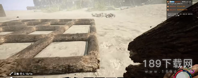 2、造好之后,玩家需要使用原木对着这个正方行的框,提示有白色虚线点鼠标左键建造地板;