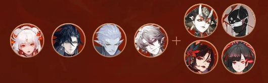 不知火+心狩鬼女红叶+鬼王酒吞童子+修罗鬼童丸+X,五手可以从阎魔、帝释天、鸦天狗中选择。