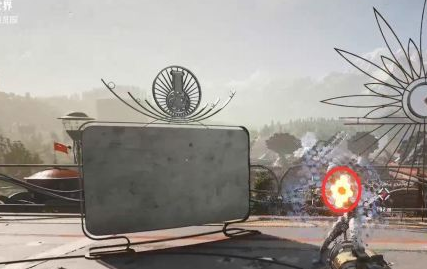 1.首先到站后遭遇持盾的机器人,射击盾上的发光部位可击碎它的盾。