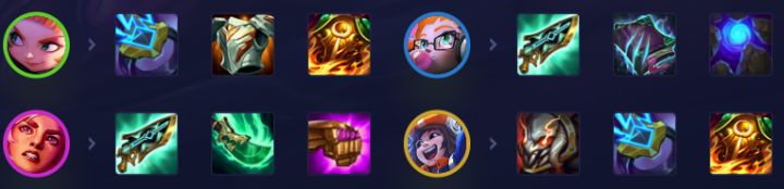 1.珠光护手 2.朔极之矛 3.蓝霸符 4.离子火花(安妮) 5.日炎斗篷(安妮) 6.海克斯科技枪刃(塔莉娅) 7.石像鬼石板甲 8.莫雷诺秘典 9.海克斯科技枪刃(佐伊) 10.离子火花(努努) 11.日炎斗篷(努努) 12.泰坦的坚决