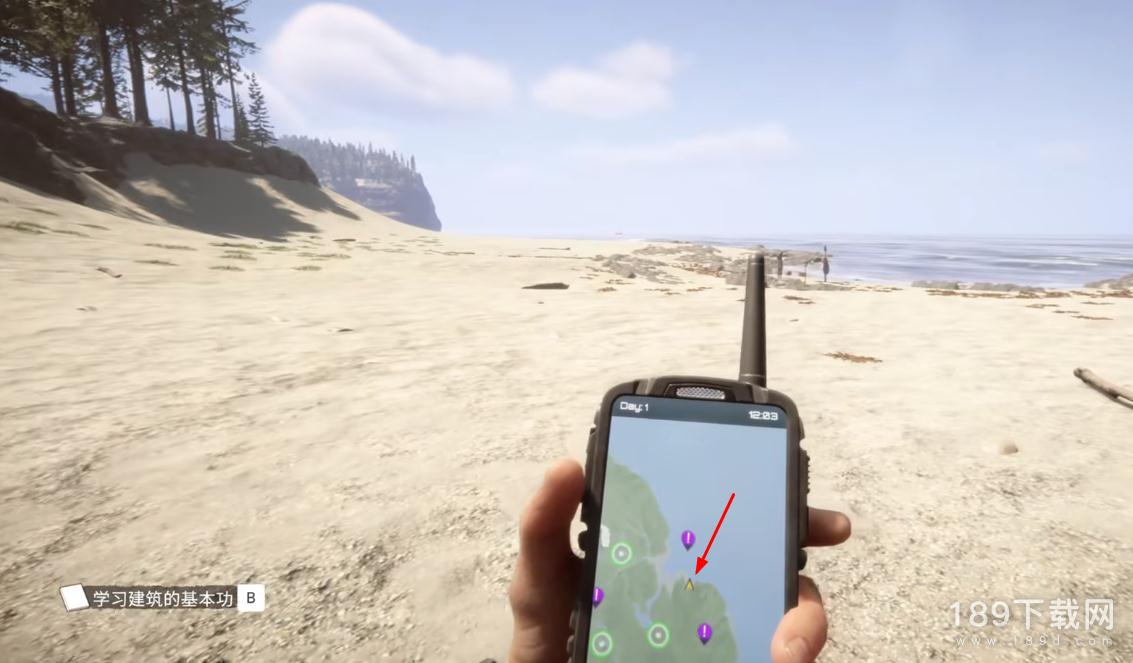 在《森林之子》中,玩家可以在以下箭头所指的区域获得GPS追踪器: