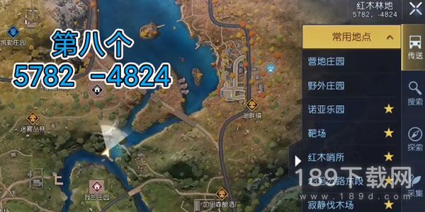 位置:位于坐标附近的水底下,可以根据地图所给的提示,位于凸起的陆地最尖部。