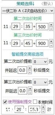 【智能提交】功能默认为将您的出价金额到区间时提交,并且或会配合(提前延迟、强制提交)等使用!